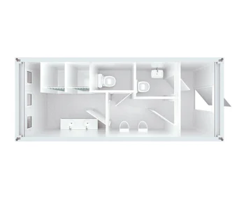 Der SANI Dusch-WC-Container 20ft steht online zur Miete bereit. Du hast Anspruch auf alle Serviceleistungen des Anbieters. Der Dusch-WC-Container 20ft ist ausgestattet mit 2 WC´s, 2 Urinalen, 1 Waschtisch, 2 Duschen mit Doppelwaschplatz, Seifen- und Handtuchspender, elektr. Heizung, Beleuchtung und Elektroinstallation. Verfügt über folgende Anschlüsse - Stromanschluss: 32 A CEE, 400 V, Sanitäranschluss: Frischwasser 3/4", Abwasser DN 100.
